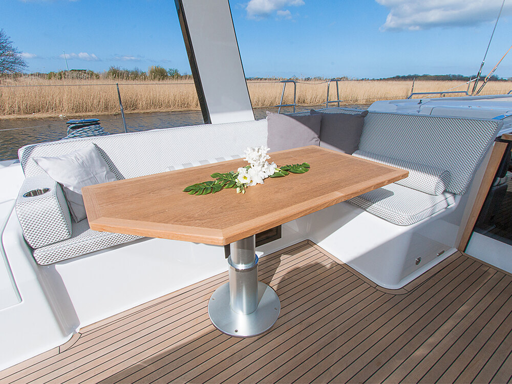 作为汉斯的旗舰船型 675的内部空间概念已经超越了帆船的特性。 宽敞、美丽、舒适共同创造了一流的幸福氛围。 手工制作的家具、超大舷窗和来自20多个国家高品质的材料,让您感受最奢华的海上生活。